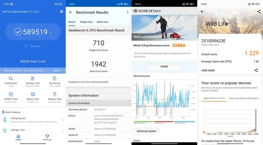 Meski secara akselerasi terasa standar, namun chipset ini memiliki kinerja yang optimal dalam hal konsumsi daya. Jadi, jangan heran jika Redmi Note 15 ini cukup mumpuni di sektor ketahanan baterai.