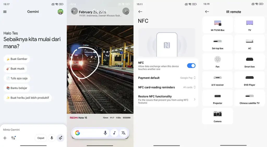 Menariknya, Redmi Note 15 telah disematkan fitur AI, Google Gemini, untuk beragam fungsi semisal Gemini live, Circle to Search dll.